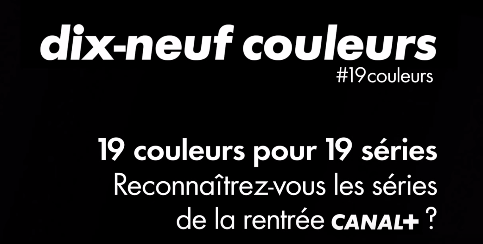 Baptisée #19couleurs, cette campagne mystère est constituée d’une vidéo minimaliste, dans laquelle on découvre différentes couleurs associées à des sons précis. L’objectif, vous l’aurez deviné, est d’associer les #19couleurs et sons aux 19 séries programmées sur Canal+ pour la rentrée.