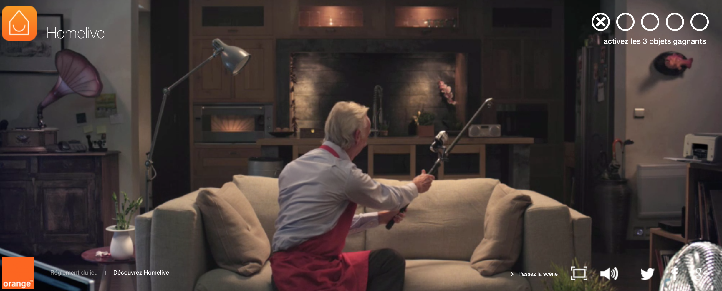 Une expérience amusante qui permet de découvrir de manière ludique les avantages et fonctionnalités de ce nouveau service d’Orange, à tenter depuis un ordinateur ou directement depuis votre smartphone relié à l’ordinateur. Par ce biais et si vous trouvez les bons objets, vous pourrez alors vous inscrire à un tirage au sort pour tenter remporter 10 packs Homelive. En plus de l’expérience digitale, vous pouvez aussi essayer d’interagir avec notre papy national sur Twitter via @Roger77000. Encore faut-il qu’il se lève de son canapé !