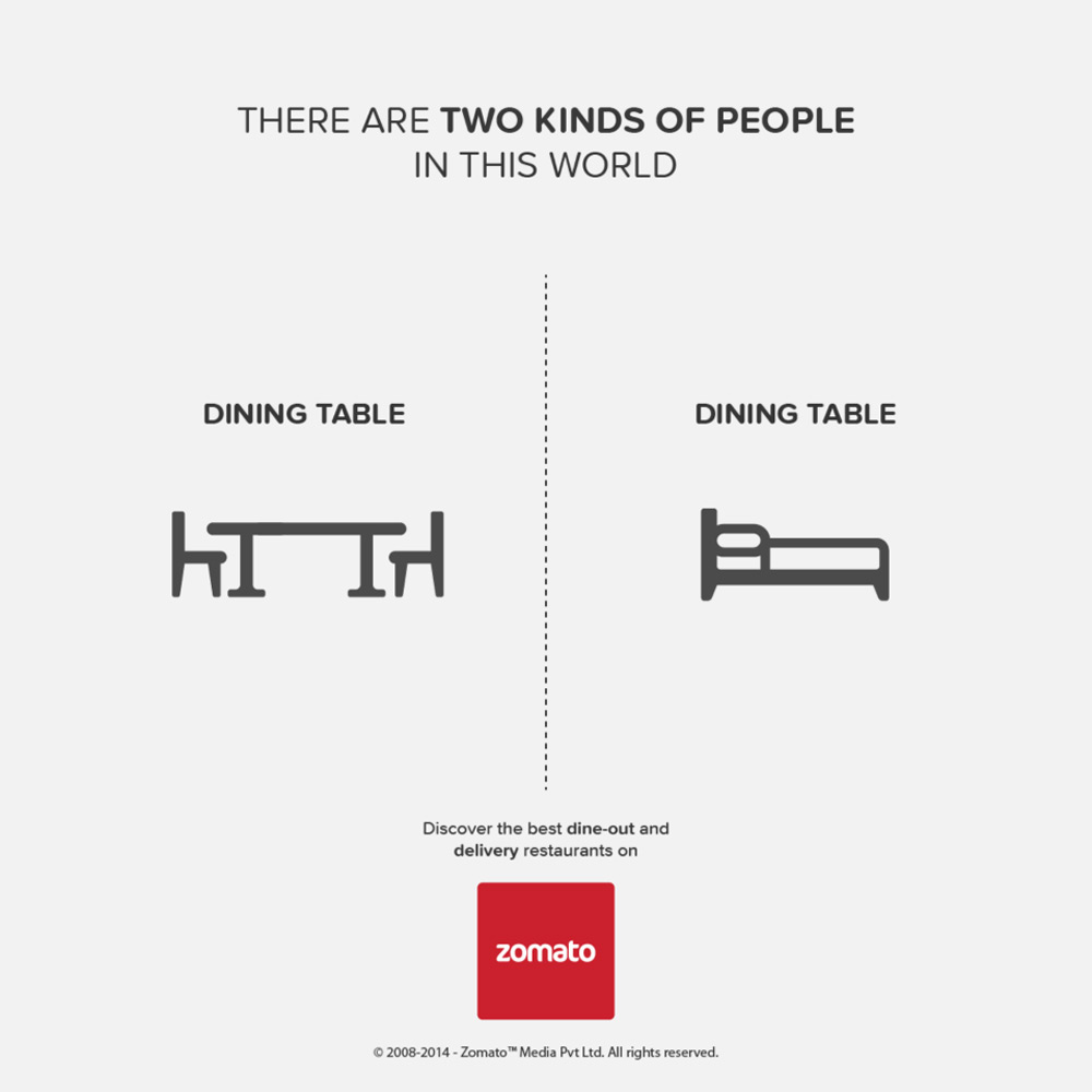 Parce qu’en termes de goût, nous sommes tous différents, Zomato a décidé de s’appuyer sur les différences qui peuvent exister dans sa nouvelle campagne de communication baptisée Two Kind Of People (Deux types de personnes).
