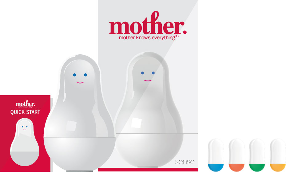Conçu par la société Sen.se, ce robot n’est pas un jouet malgré sa ressemblance avec un personnage de Barbapapa et à une poupée russe. Connectée à internet, Mother enregistre ensuite tout ce que vous lui demandez grâce à ses capteurs « cookies » que vous pouvez coller où vous le souhaitez : sur soi, Mother se transforme en podomètre, sur votre cafetière, elle vous prévient de votre consommation de café, dans votre lit, elle calcule votre sommeil ou encore le changement de température d’une pièce sur la fenêtre. Et ce n’est qu’un échantillon des possibilités que vous réserve Mother, qui se préoccupe de votre qualité de vie, telle une mère ! Disponible au printemps 2014, Mother sera vendue à 199 €, base + 4 cookies inclus. Pour obtenir plus de cookies, comptez 88 € les 4, sachant que ces capteurs ont une durée de vie d’un an.