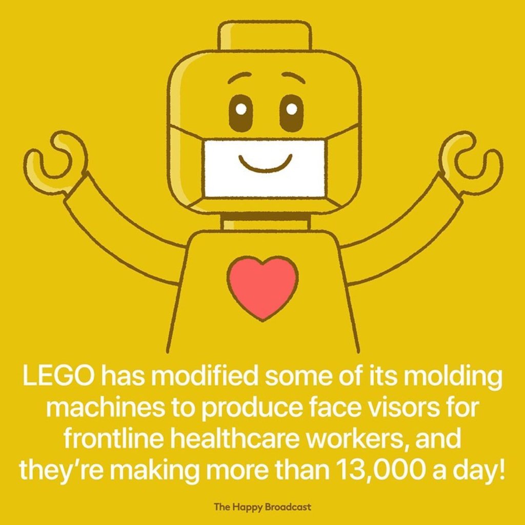“LEGO a modifié le moule de ses machines pour produire 13 000 visières par jour afin d’aider le personnel soignant.”