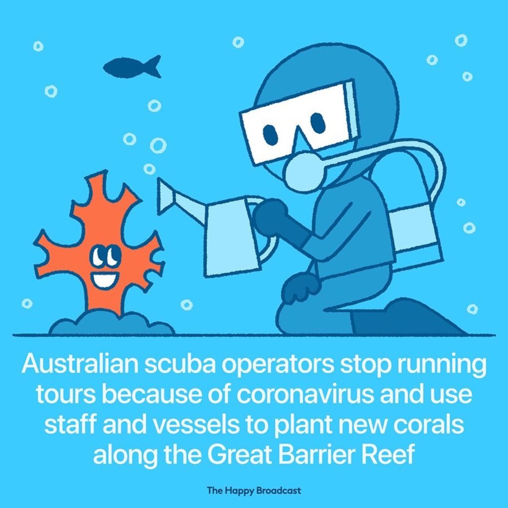 “Les opérateurs de plongée australiens ont stoppé leurs excursions à cause du coronavirus et ont demandé aux équipes d’utiliser les navires pour planter des coraux le long de la Grande Barrière de Corail.”