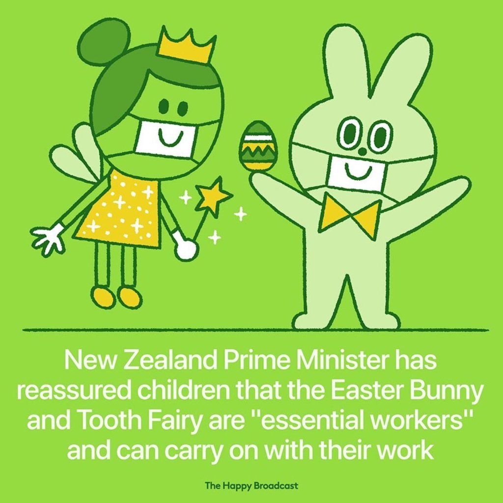 “Le Premier Ministre Néo-Zélandais a rassuré les enfants en précisant que le lapin de Pâques et la petite souris sont des “travailleurs essentiels” et qu’ils pourront continuer leurs missions malgré le confinement.”