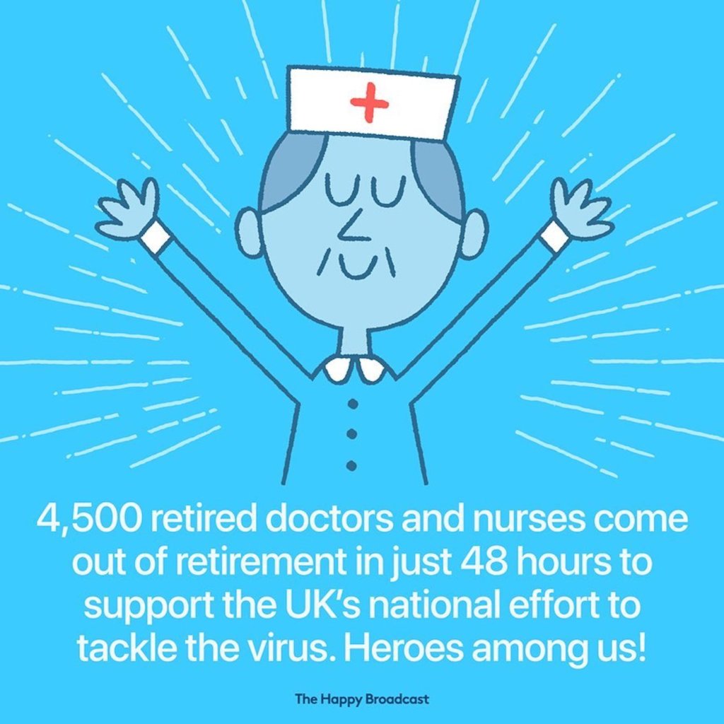 « 4 500 docteurs et infirmiers sont sortis de leur retraite en moins de 2 jours pour soutenir la lutte contre le coronavirus au Royaume-Uni.”