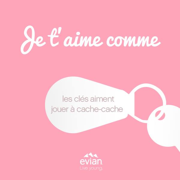 Et les meilleures suggestions seront reprises sur les réseaux sociaux par Evian ! Une campagne décalée qui détourne avec humour la Saint Valentin et qui devrait faire sourire même les Sans Valentin(e) ! Alors chéri, sache que je t’aime comme le sable aime ma serviette à la plage et comme le marketing et le commerce aiment la Saint Valentin !