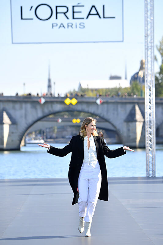 Doutzen Kroes lors du défilé Fashion Week Paris de l'Oréal Paris sur la Seine