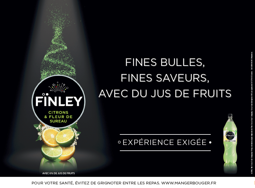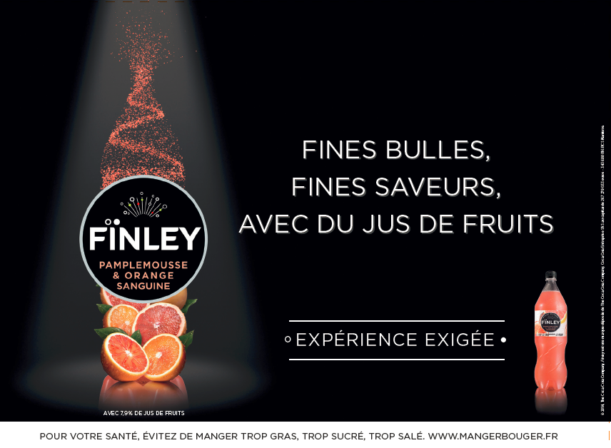 Et pour faire la promotion de l’arrivée sur le marché des boissons Fïnley, Coca-Cola a fait appel à Publicis Conseil pour la réalisation de deux spots publicitaires de présentation des plus acidulés. Ces deux films illustrent la signature de cette nouvelle boisson, imaginée par Barbara Castello : « Expérience Exigée » en mettant en valeur l’expérience du goût que peuvent avoir les adultes qui ont suffisamment d’expérience pour apprécier la finesse et la subtilité des saveurs, l’amertume comme l’acidité. Savoir garder le sourire face à la nouvelle amie d’un ex ou encore ne pas jouer au dur si l’on n’en est pas un !