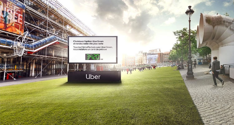 A l'occasion de la Semaine Européenne de la Mobilité, Ubi Bene met les Parisiens au vert pour UberGreen et transforme la place Georges Pompidou en espace végétalisé géant.