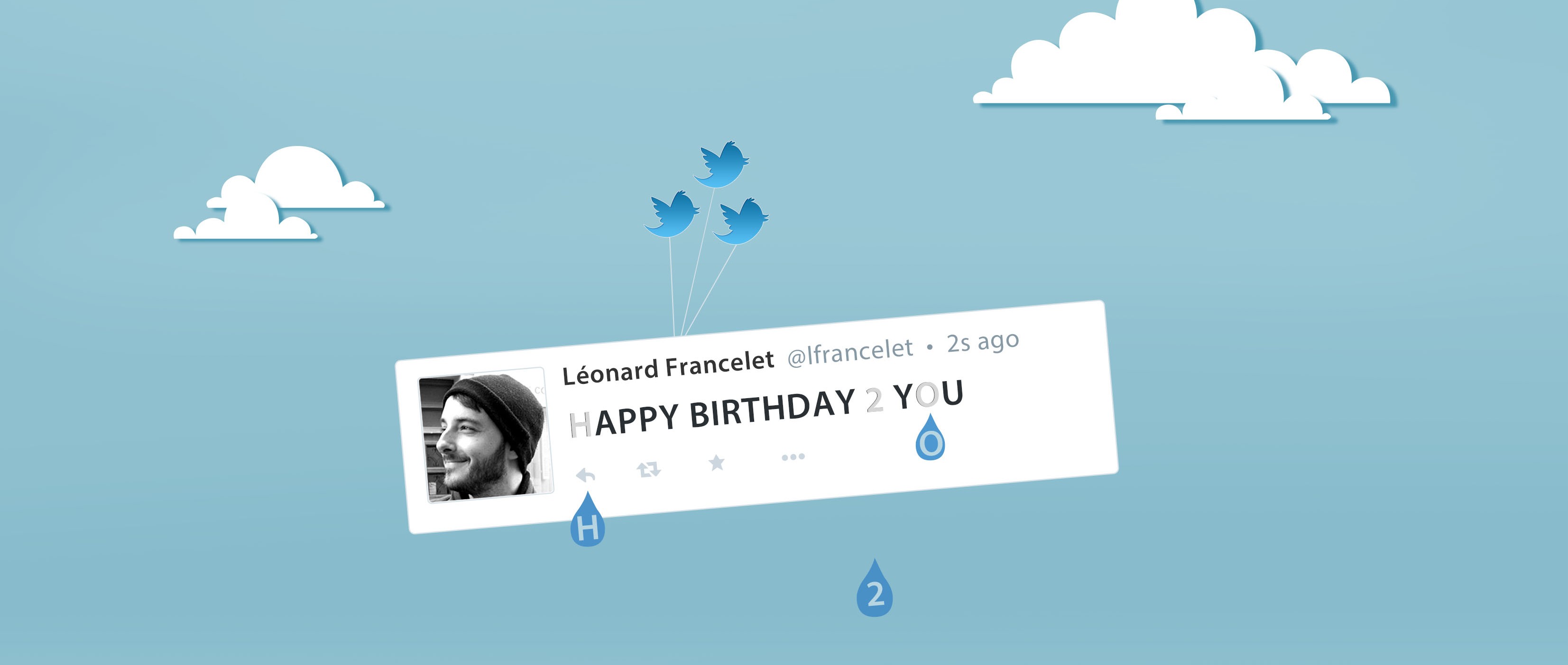 Un filtre à tweet qui récupère les H, les 2 et les 0 pour en faire de l’eau !
