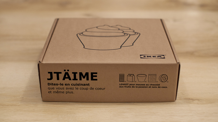 IKEA profite également de la Saint-Valentin, pour célébrer une autre forme d’amour en mettant en jeu des « KITLOV » qui répondent aux doux noms de « JTÄIME » ET « MÖNCŒUR » dans lesquels on retrouve des recettes, ustensiles et autres ingrédients pour cuisiner avec amour.