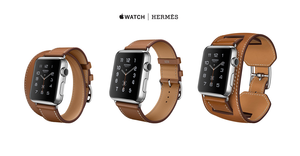 Côté design, Apple ajoute deux nouvelle couleurs à ses montres connectées, or et rose et annonce un partenariat avec la marque de luxe Hermès pour trois nouveaux bracelets en cuir, dont un avec une double boucle, qui seront disponibles au mois d’octobre.