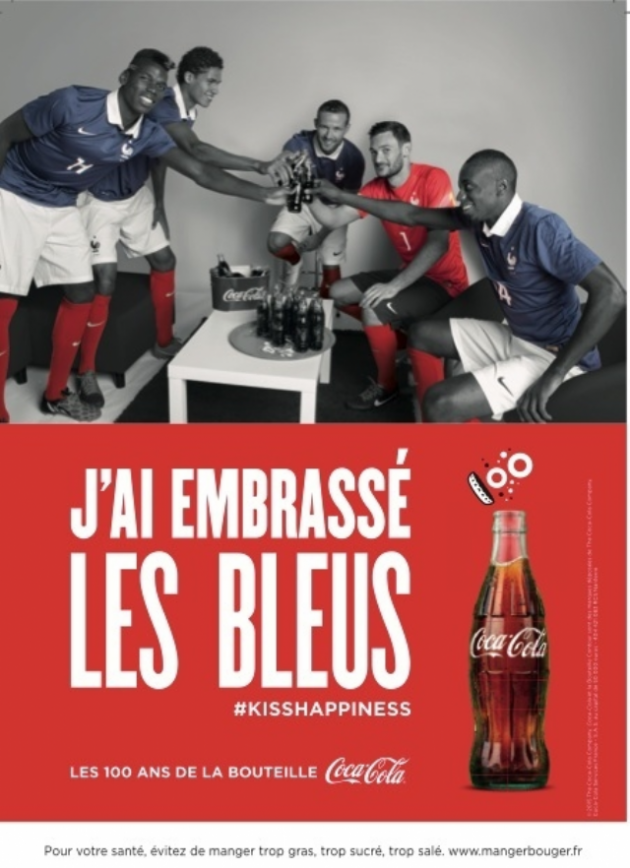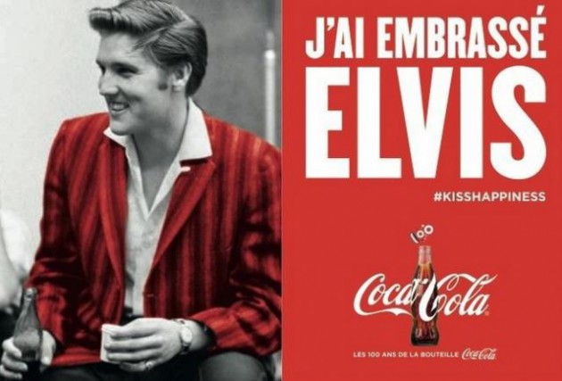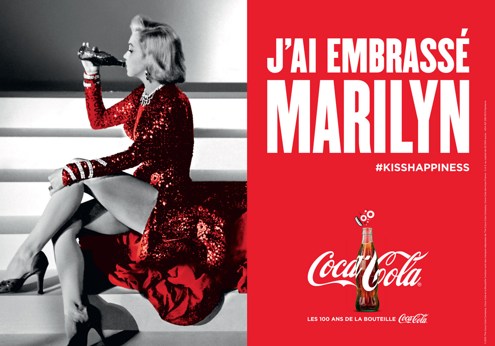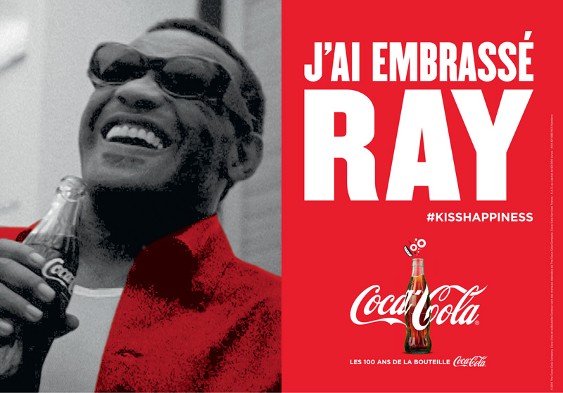 Pour l’événement, la marque lance une campagne d’envergure à 360 reconnaissable par le hashtag #KissHapiness et qui s’intitule « J’ai Embrassé ». Cette accroche s’inspire d’une citation d’Andy Warhol et permet à Coca-Cola de mettre en scène différentes icônes qui ont marqué l’histoire, de Marilyn à Elvis en passant par Ray Charles.