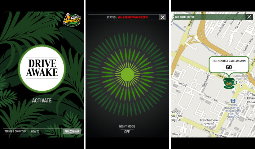 La plus grande chaîne de café en Thaïlande, Café Amazon, a développé une application permettant de réveiller les conducteurs qui s’endorment sur la route.