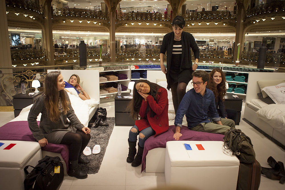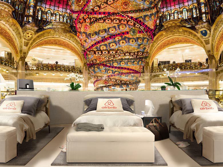 AIRBNB transforme les galeries lafayette en chambre d'hôte le temps d'une nuit avant les soldes