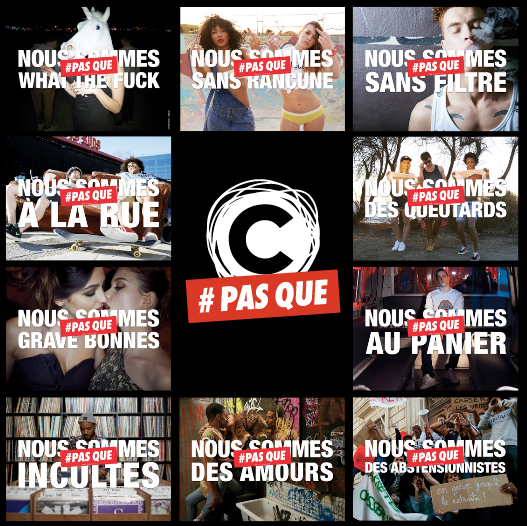 Après 4 jours d’affichages mystérieux et anonyme, la révélation a été faite hier soir avec des sticks et un hashtag, comme une réponse au déchaînement du public : #pas que. Car justement la jeunesse ce n’est pas qu’être abstentionnistes, followers ou sans filtre et avec cette campagne, Citadium leur adresse un énorme clin d’œil en montrant qu’il partage lui aussi leur refus de faire rentrer les jeunes dans des cases ou des codes forcément réducteurs.