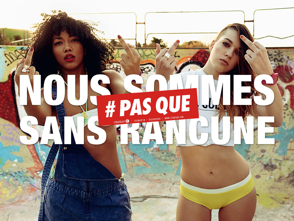 Ce hashtag, en plus de rendre la campagne d’affichage interactive renvoie vers une page web collectant les différents contenus « hashtaggés » #pas que : affiches détournées par des tagueurs contents ou pas, les vidéos de leurs exploits ou encore le making of de la campagne. Au vue des milliers de réactions sur la toile, Citadium et l’agence Les Gros Mots ont d’ores et déjà réussis leurs missions : laisser les internautes s’emparer du sujet et en faire leur propre sujet. La suite est à découvrir sur le site : www.pas-que.com
