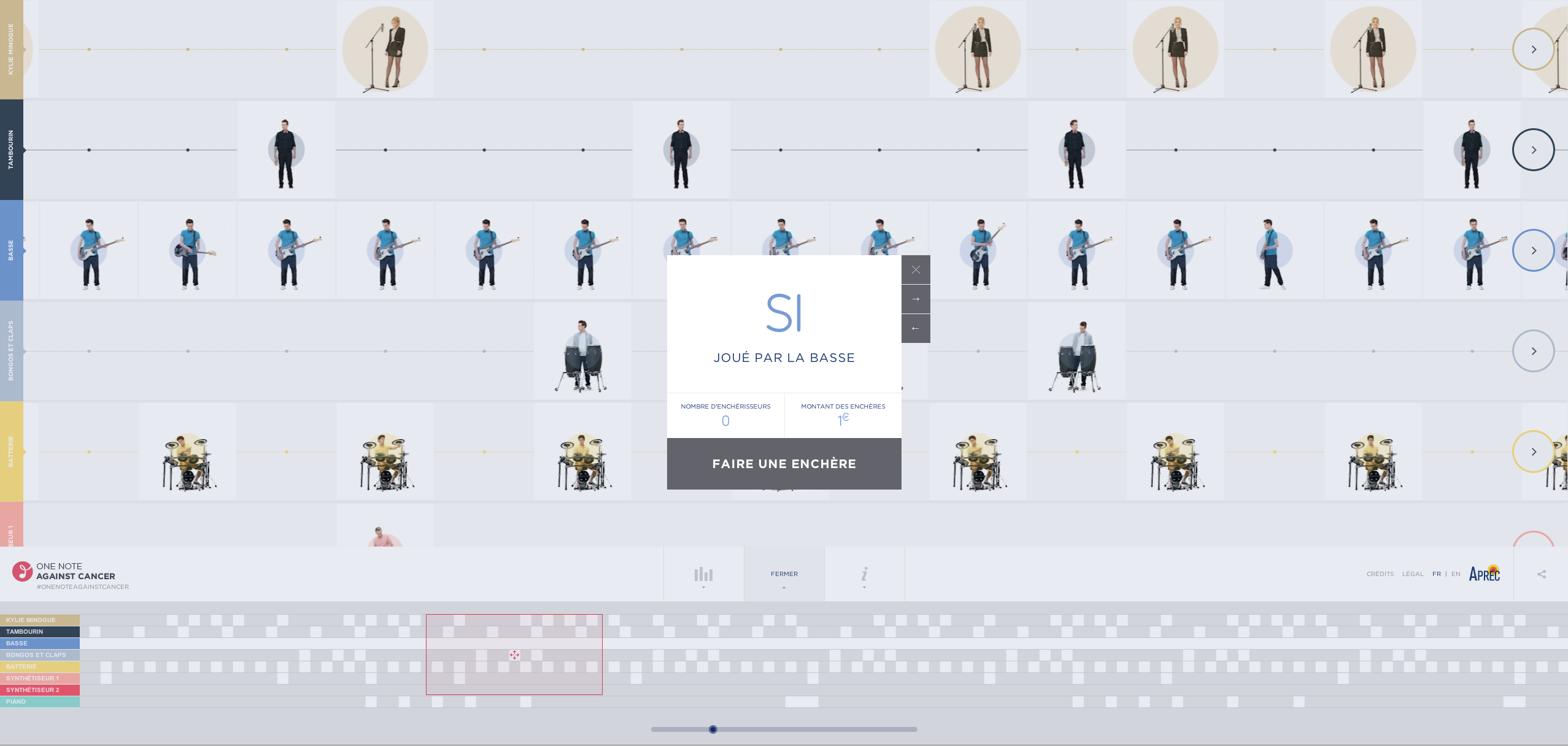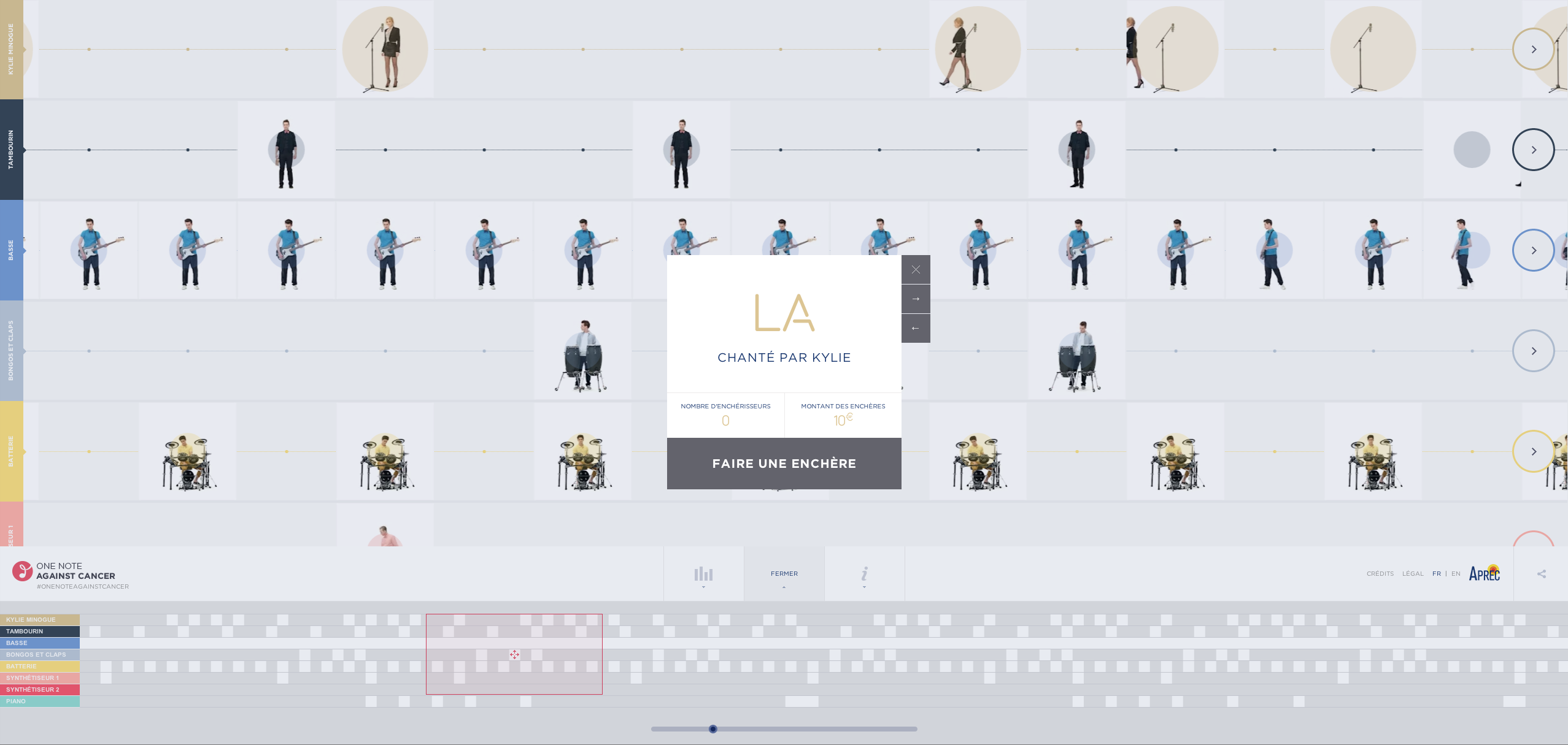 Pour convaincre la chanteuse de participer, Publicis Conseil a cherché à lui donner un rôle central dans la campagne et pas seulement un nom au dessus d’une affiche. Et quoi de mieux pour une chanteuse qu’une campagne sur le thème de la chanson ? C’est ainsi que l’agence a eu l’idée d’un dispositif caritatif original avec une opération baptisée ONE NOTE AGAINST CANCER. Une expérience unique qui met aux enchères des notes de musiques !