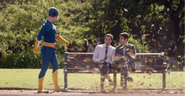 Cette fois-ci, pas question d’histoire d’amour mais de concurrence professionnelle. Alors qu’un super-héros est de passage dans un parc, il est subjugué par la rapidité de transfert d’un fichier que s’échange deux collègues de travail en pause déjeuner.