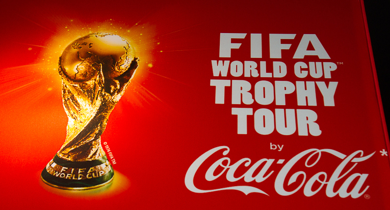 A quelques semaines de la Coupe du Monde de football, Coca Cola et la FIFA permettent aux fans du sport d’approcher le mythique trophée, symbole d’espoir et de victoire. Une collaboration exclusive qui prend la forme d’une tournée mondiale à travers 90 pays et qui a débutée le 12 septembre 2013 à Rio de Janeiro.
