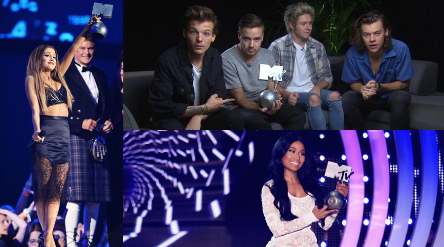 Ariana Grande sort également du lot avec deux prix notoires : celui de la meilleure chanson pour son tube « Problem », ainsi que le prix de la meilleure artiste féminine face à Beyoncé, Nicki Minaj, Taylor Swift et Katy Perry. Cette dernière, actuellement en tournée en Australie, faisait partie des favorites avec sept nominations mais ne recevra que deux prix, celui du Meilleur Look et du Meilleur Clip pour Dark Horse. Et pour Beyoncé, c’est encore une fois son titre Pretty Hurts qui lui fait gagner le prix de la Meilleure chanson à message. Des gagnants, qui pour la plupart n’ont pu être présents à Glasgow pour récupérer leur prix.