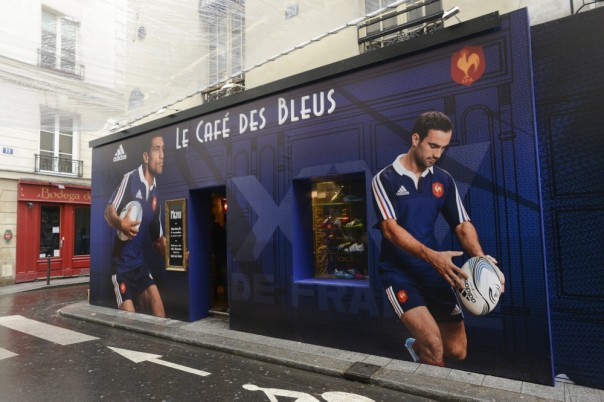 Ainsi, la marque aux trois bandes et son agence d’événementielle Ubi Bene ont eu l’idée d’investir deux bars parisiens disposés face à face et de les redécorer aux couleurs des deux équipes, un bleu et un noir, de quoi en faire un lieu de rendez-vous incontournable pour l’ovalie…