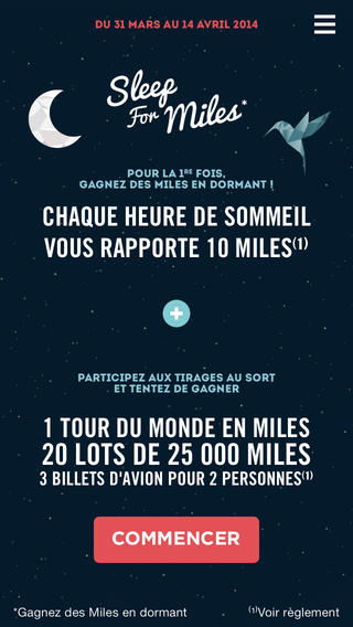 Baptisé Sleep For Miles, ce jeu permet de gagner jusqu’à 3 millions de Miles jusqu’au 14 avril juste en dormant ! Pour ce faire, il suffit de poser son smartphone sous son oreiller pendant la nuit et l’application se charge de calculer le temps de sommeil et de le convertir en Miles en fonction de la durée : une nuit de 8h rapporte par exemple 80 Miles au réveil ! Ça donne envie d’aller se coucher, non ?
