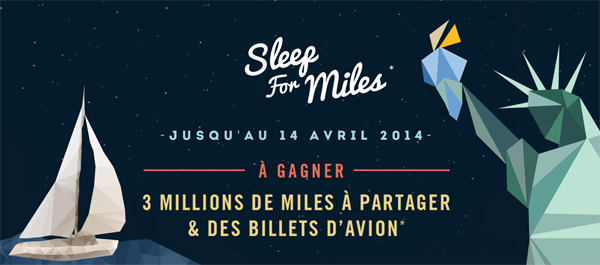 Air France met également en jeu 1 million de Miles-Prime sur le site web Sleep For Miles, à gagner par tirage au sort. Et à la fin du jeu, la nuit du 13 avril, le dernier grand gagnant remportera 500 000 Miles-Prime soit l’équivalent d’un tour du monde pour deux personnes !