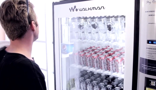 pour faire la promotion de ce lecteur étanche, Sony le propose en bouteillle, dans un distributeur