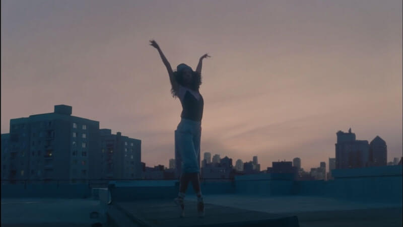 Confinée, on voit la jeune fille continuer à répéter avec ténacité dans sa chambre, dans son immeuble, dehors...