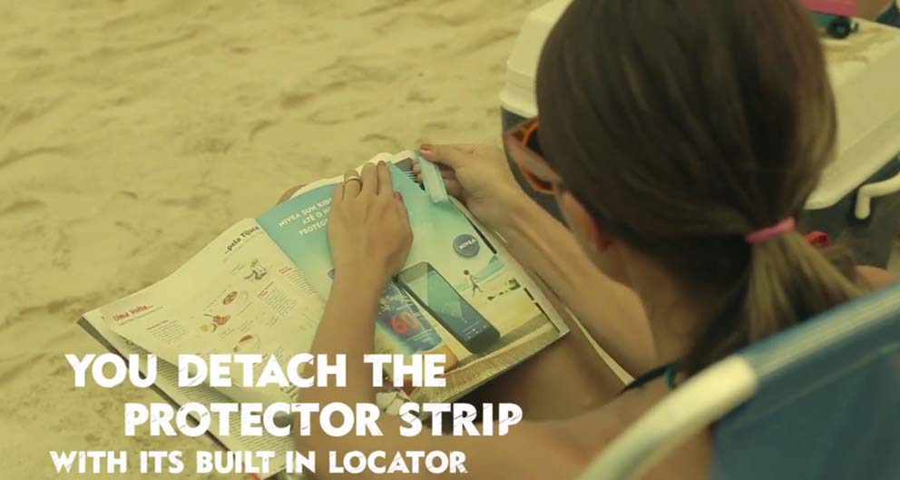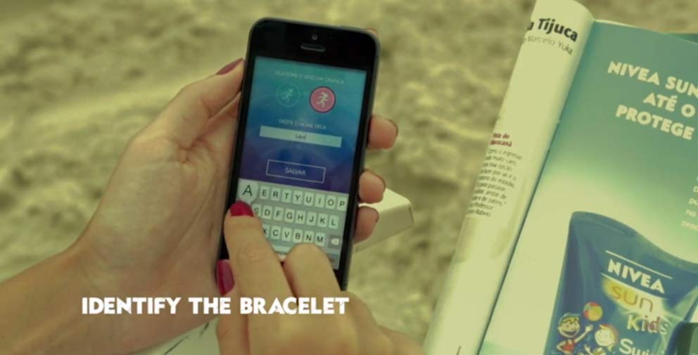 Une fois paramétrée en entrant notamment un périmètre à ne pas dépasser, l’application localise votre enfant et émet une alarme s’il sort du périmètre renseigné en vous précisant la distance à laquelle il se trouve. Des bracelets waterproof et réutilisables que Nivea a distribué gratuitement en les attachant à ses publicités print présentes dans les magazines brésiliens.