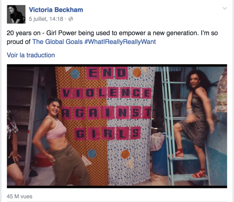 Une vidéo qui suscite beaucoup d’intérêts sur la toile puisqu’elle a déjà été vue plus de 553 000 fois ! Il faut dire que même Victoria Beckham, ex Spice Girls en personne, lui a consacré un statut Facebook, partagé plus de 620 000 fois : «20 ans plus tard – Le Girl Power est utilisé par une nouvelle génération»