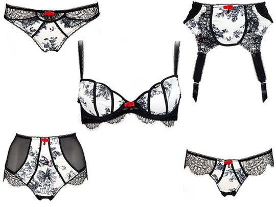 Des sous-vêtements aux couleurs dominantes noir, blanc et rouge qui sont ornés de cristaux Swarovski, de dentelle noire fabriquée en soie italienne et de motifs en toiles de Jouy, dessinés par Louboutin lui même. Des détails qui en font une collection unique et résolument sexy.
