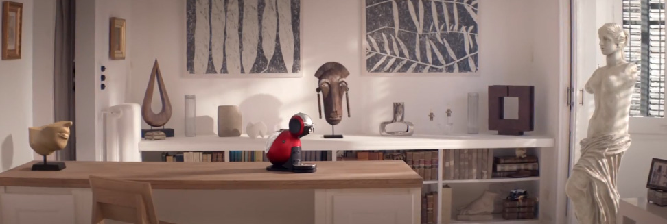 Un spot riche en jeux de mots pour mettre en avant le design de la machine multi-boissons Dolce Gusto, réalisé par Publicis Conseil. Fraîchement disposée dans un environnement artistique, elle titille la curiosité des œuvres d’arts présentes autour d’elle qui se demandent ce que ça peut bien être « Du Pop Art ?! ». S’enchaîne alors un dialogue des plus drôle entre la statut sans bras qui se demande ce qui l’empêche de goûter aux délicieuses boissons (les bras peut-être?), celle sans yeux qui ne sait pas de quoi on parle ou le masque africain qui tente le saut de l’ange, ne pouvant plus résister à la tentation… Fun et percutant, à l’image de la marque ! Tendez l’oreille, vous ne serez pas déçus…